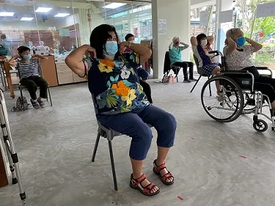 Caption: Mdm Chew (middle) enjoying a lively exercise session with Ang Mo Kio residents