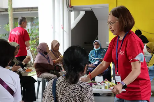Caption: At the Caring Neighbours Recognition Event in December 2025, 65 seniors enjoyed activities and lunch with the support from CapitaLand staff volunteers