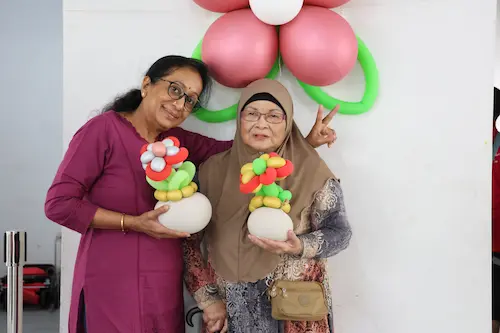 Caption: Mdm Samyiah and Mdm Vijaya (left) enjoying fun moments together