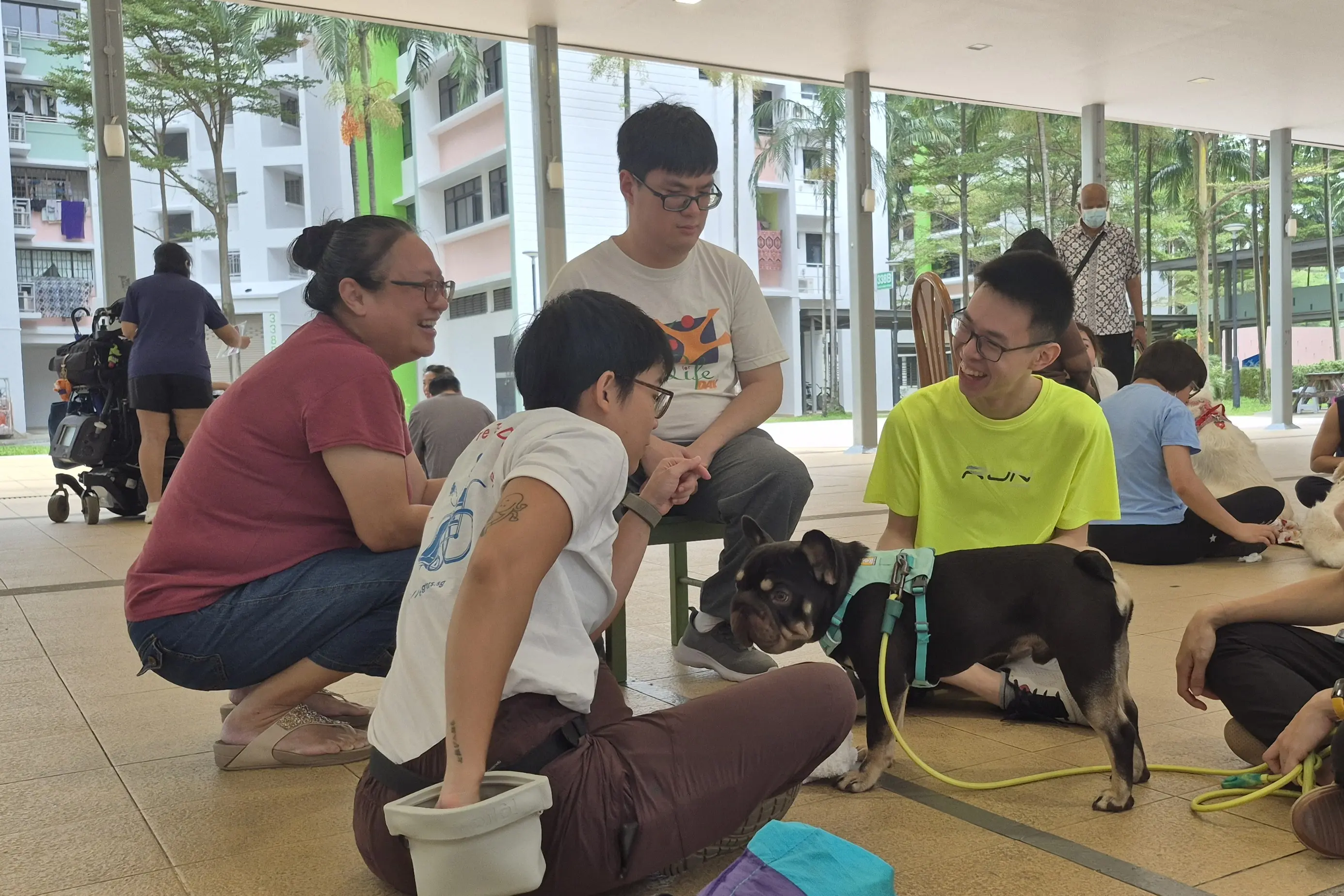 One of the most heartening changes came when Tek Poh, who had previously been afraid of dogs after a negative experience, expressed interest in joining a canine-assisted CEL programme. Mdm Sem was pleasantly surprised to see him gradually overcome his fears with encouragement from staff members at ESH@Jurong. Today, Tek Poh is able to sit near a dog and pet it – a small but significant milestone that reflects his growing comfort and independence.