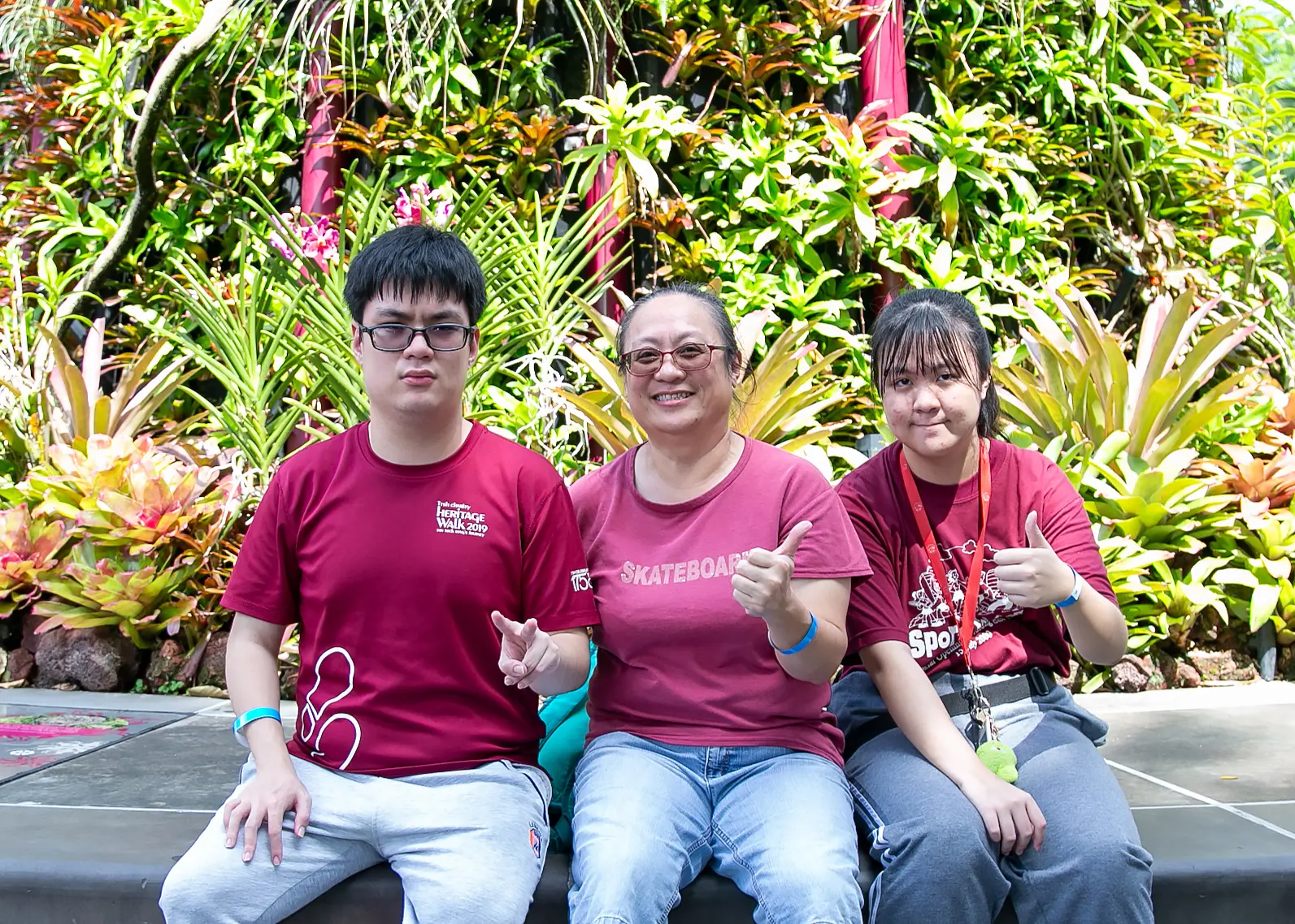 Caption: Tek Poh (left), Mdm Sem (middle) and his sister enjoying a day out at Gardens by the Bay during TOUCH Special Needs Group (TSNG)’s Family Day in 2025.