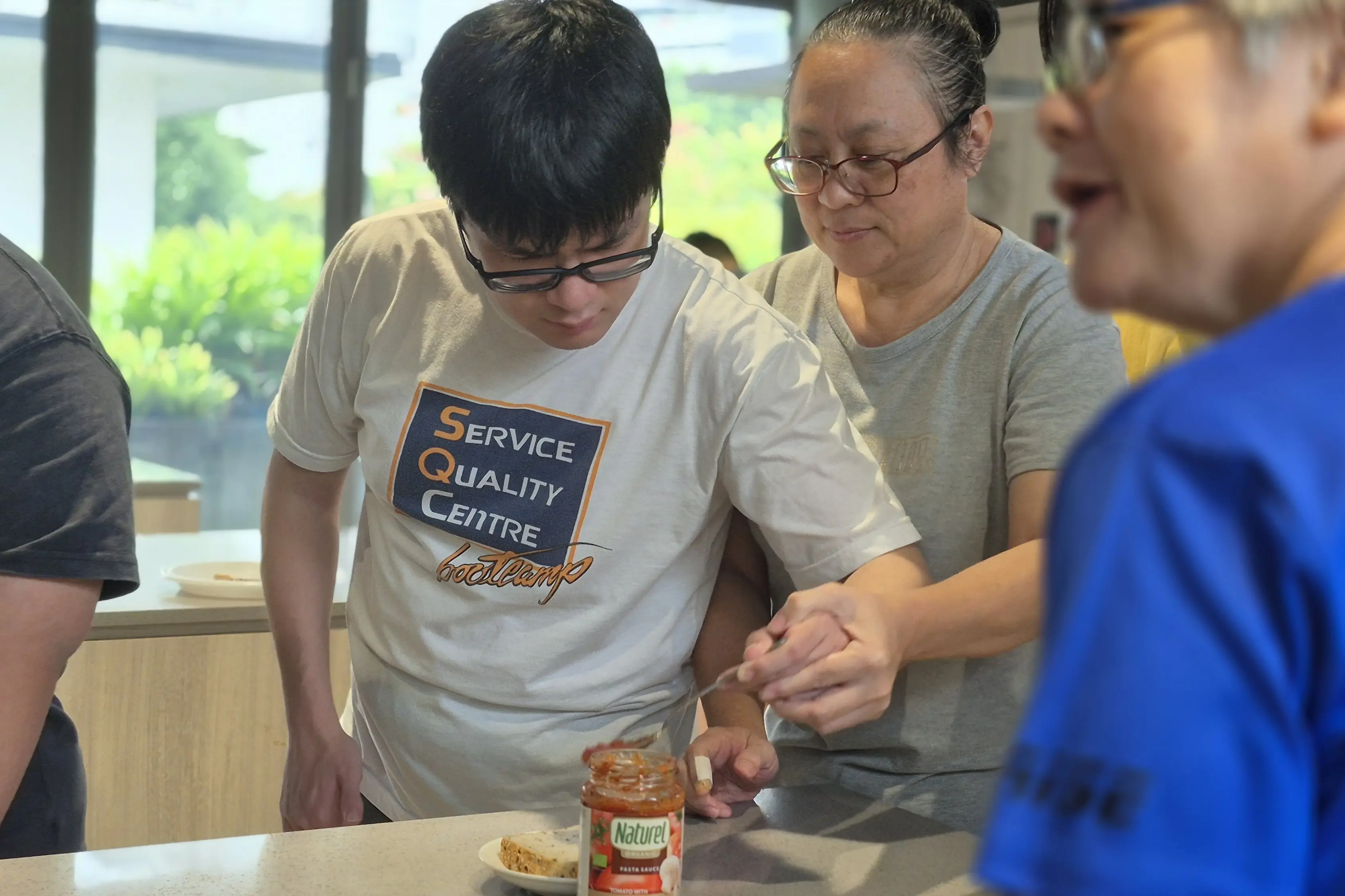 Tek Poh has also taken part in a cooking CEL workshop series. In the past, he was fearful of sharp objects, heat and fire, but through guided exposure and support, he has become more confident in handling these experiences. “I hope that Tek Poh will be able to prepare his own meals independently one day,” shares Mdm Sem.